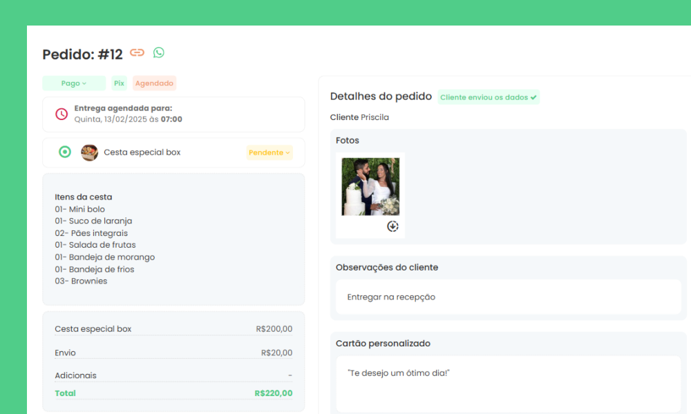 Pedidos rápidos e sem complicação – Seus clientes enviam os dados com facilidade, e você otimiza seu tempo.