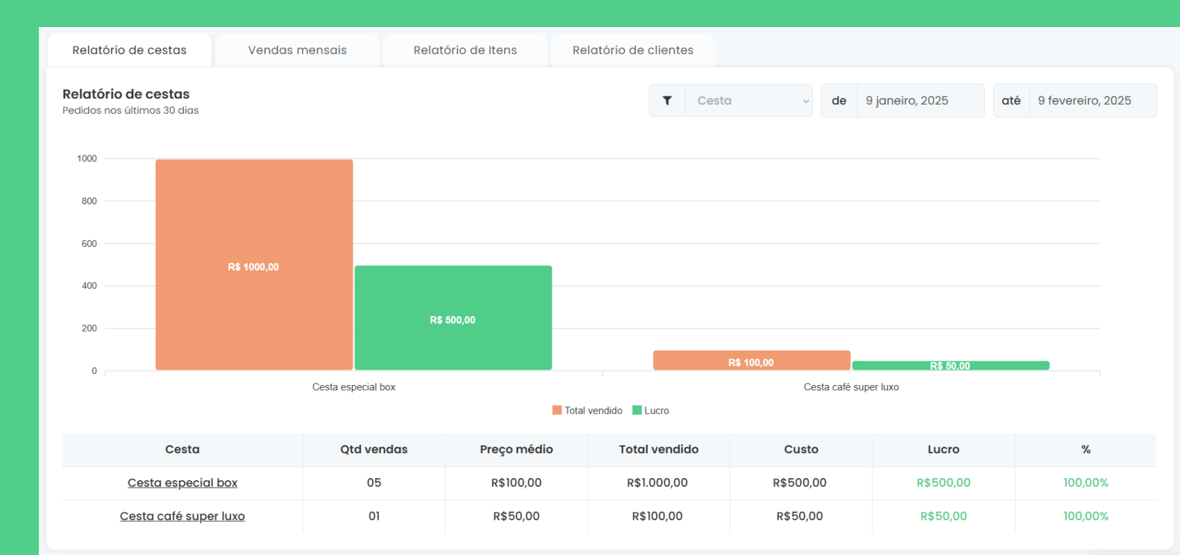 Veja exatamente quanto você lucra em cada cesta e tome decisões mais estratégicas.