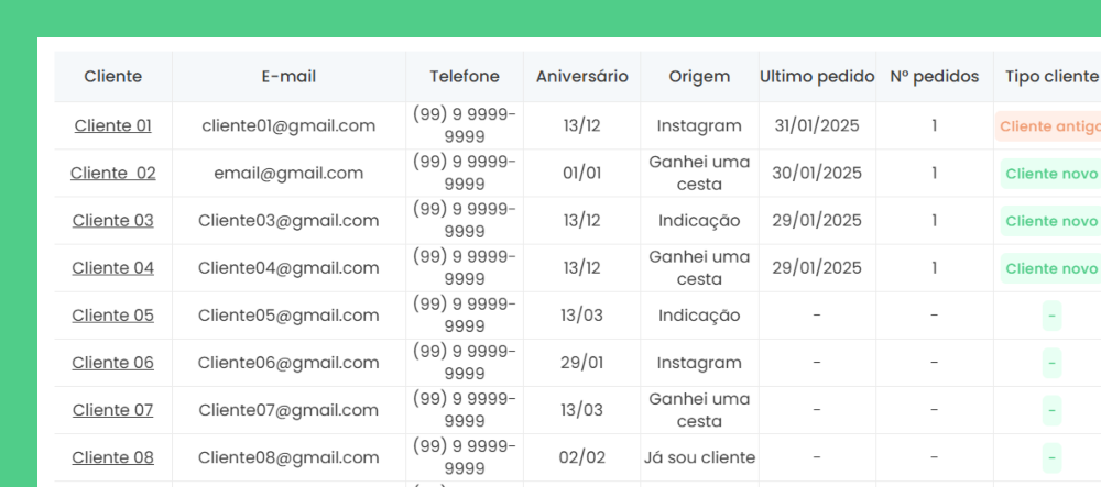 Registre os dados dos seus clientes automaticamente para vender novamente para eles!